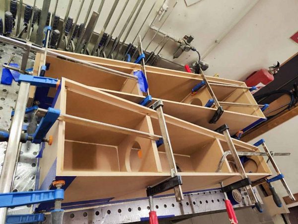 Для полноценной передачи низкочастотного регистра в АС применена нечасто используемая система BandPass. Она состоит из двух электродинамических головок, установленных внутри двухобъёмного сабвуферного пространства. Низкочастотное излучение передаётся слушателю через выведенную вперед, на лицевую панель, шахту фазоинвертора. Такая конструкция сабвуфера обладает достаточно ровной АЧХ и создаёт необходимую басовитость АС. К конструкции корпуса и его исполнению были особенные требования по жёсткости.
